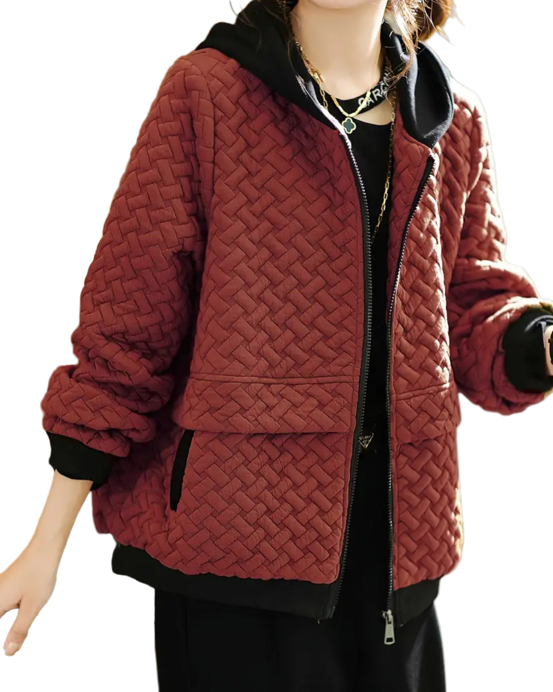 Dames Gewatteerde Jas met Capuchon en Vlechtpatroon