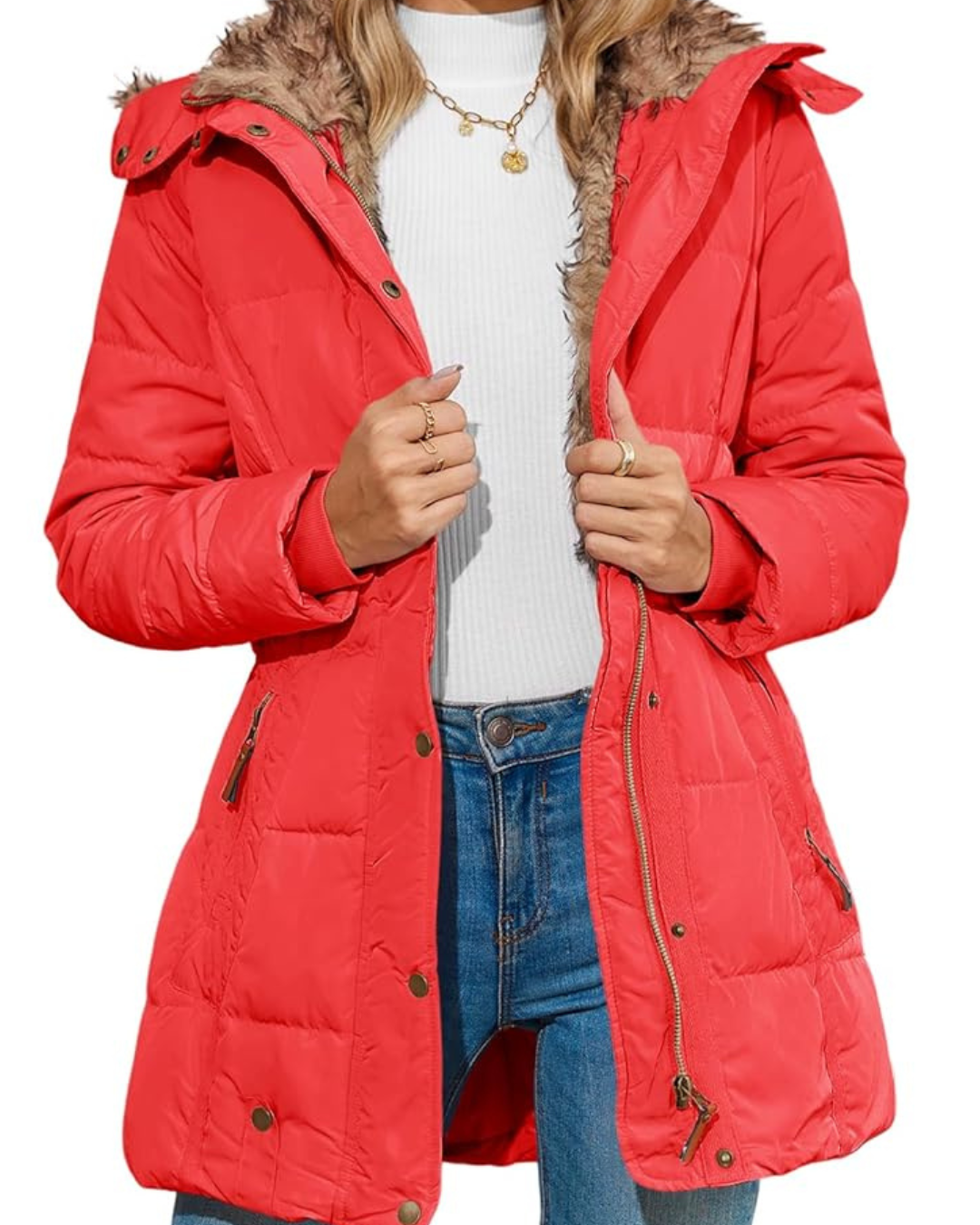 Dames Gewatteerde Parka Jas met Capuchon en Nepbont Rand