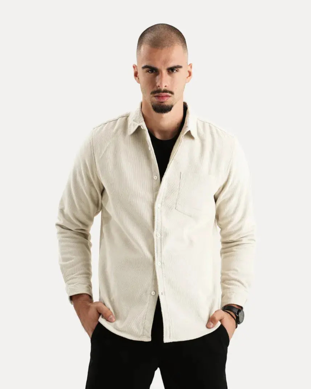 Heren Corduroy Overhemd met Lange Mouwen en Knopsluiting