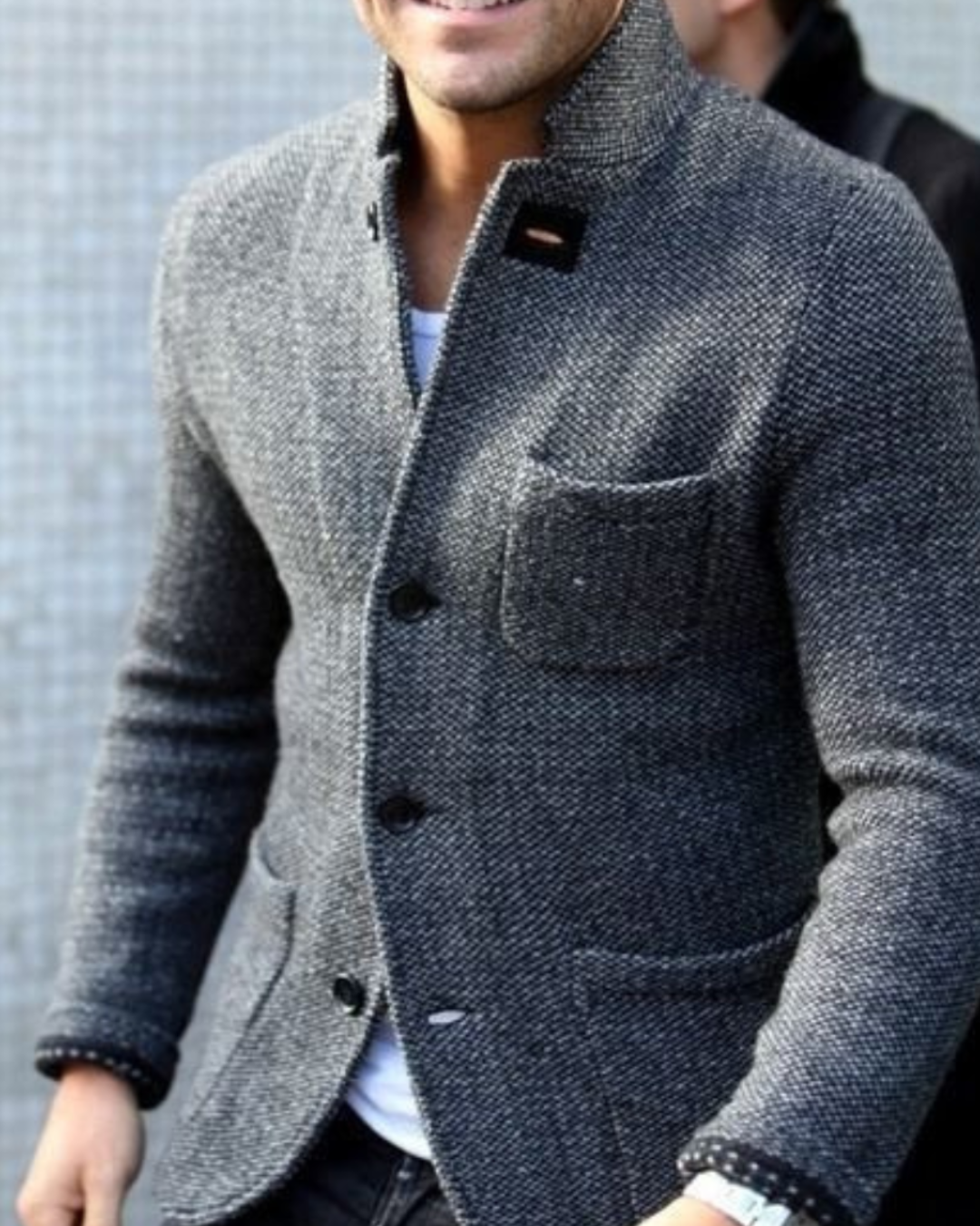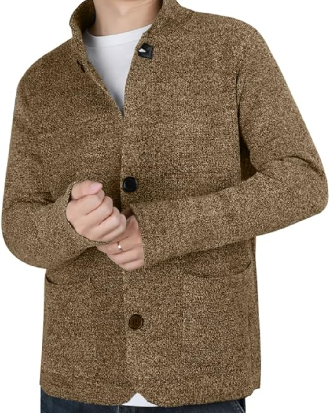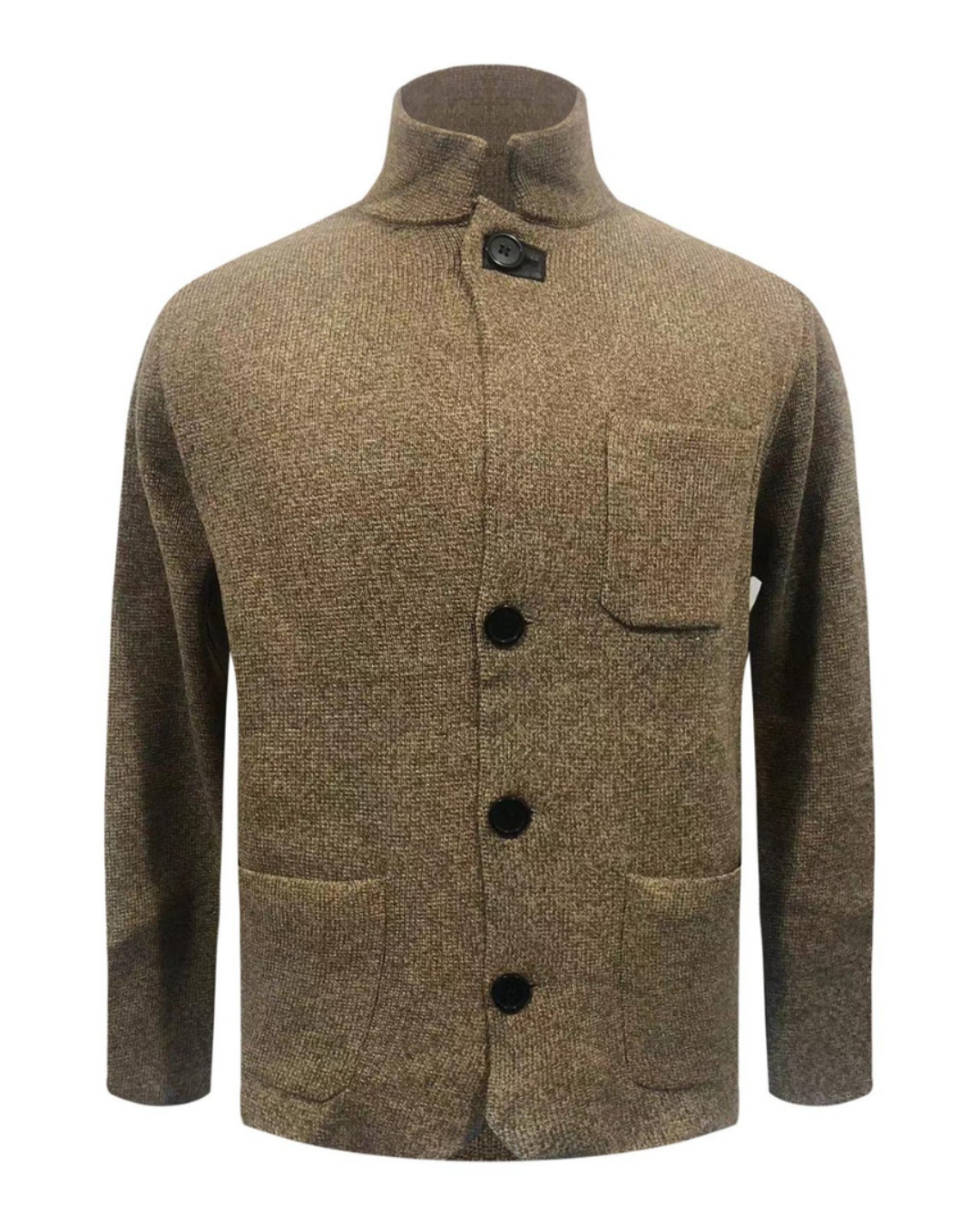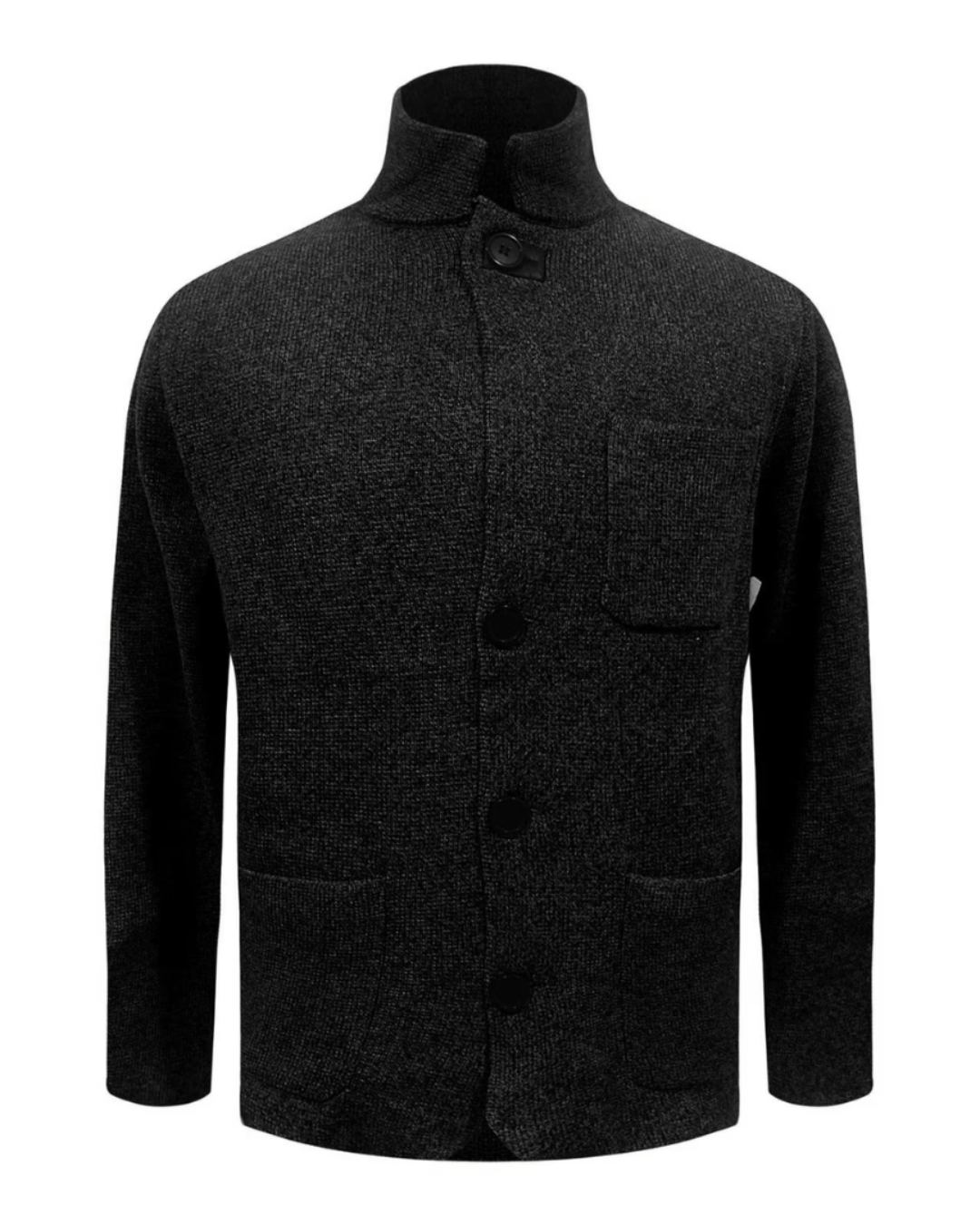 Heren Gebreid Vest met Staande Kraag en Knopsluiting