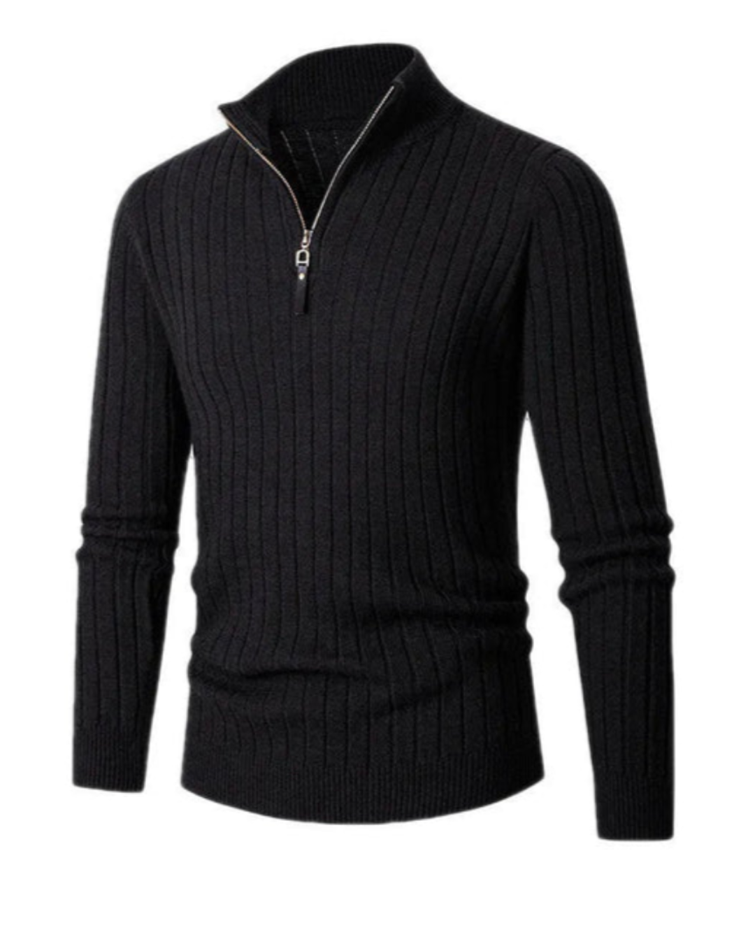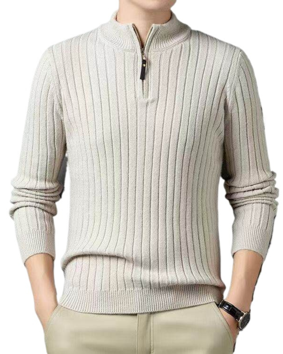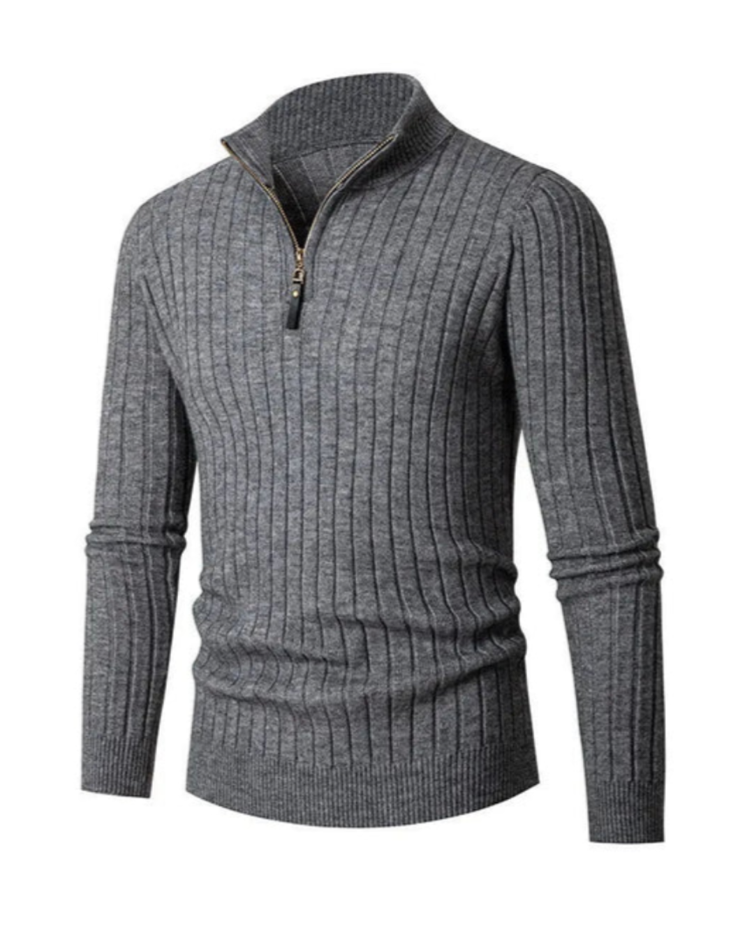 Heren Gebreide Trui met Verticale Ribbels en Kwart Ritssluiting