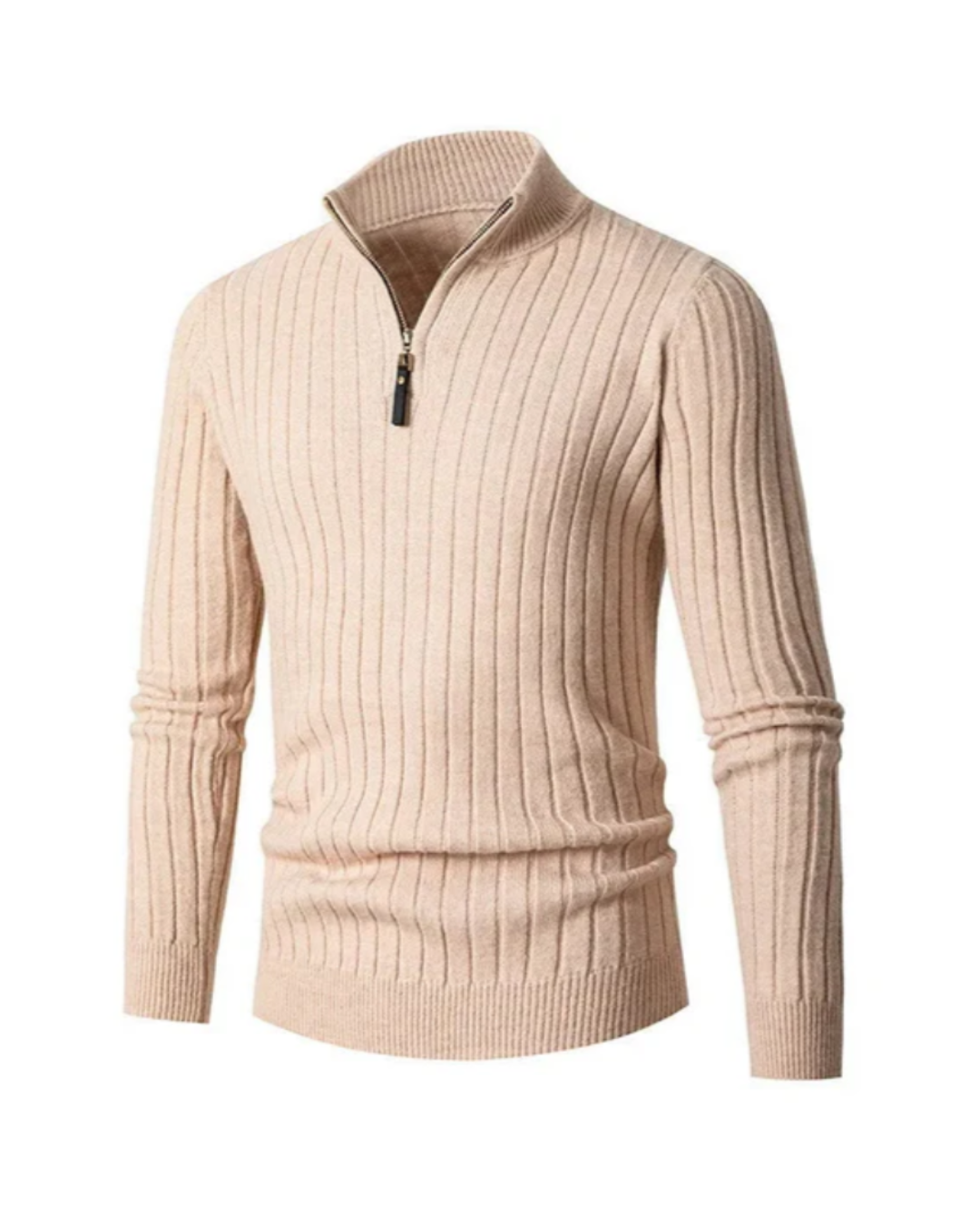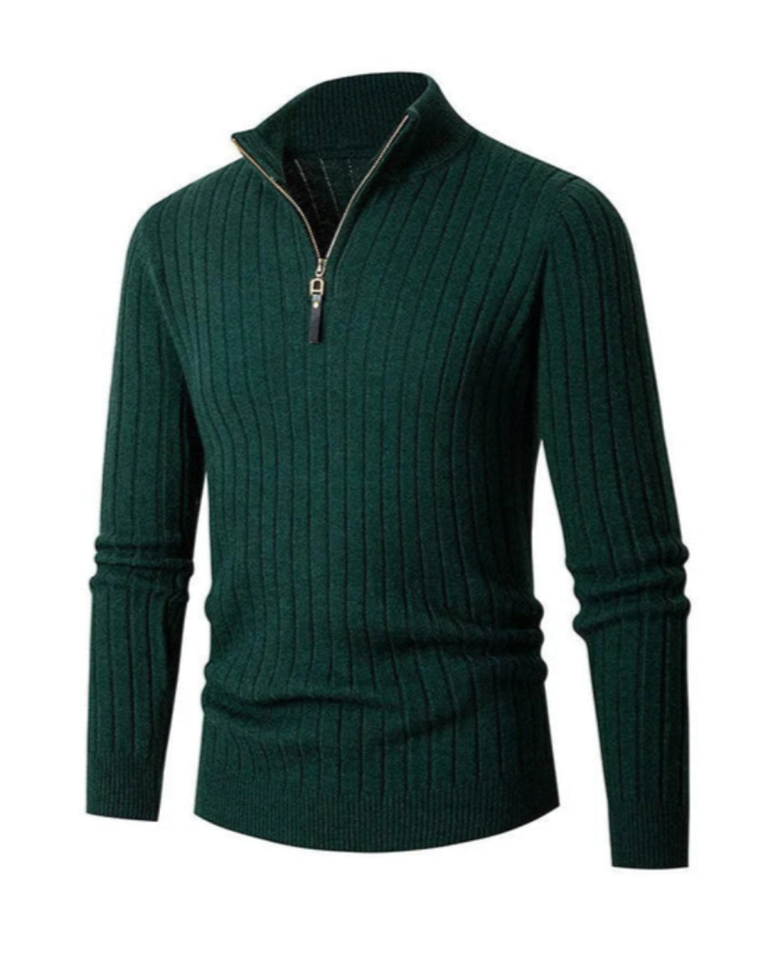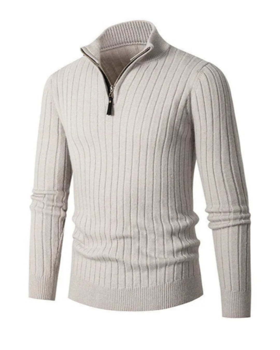 Heren Gebreide Trui met Verticale Ribbels en Kwart Ritssluiting