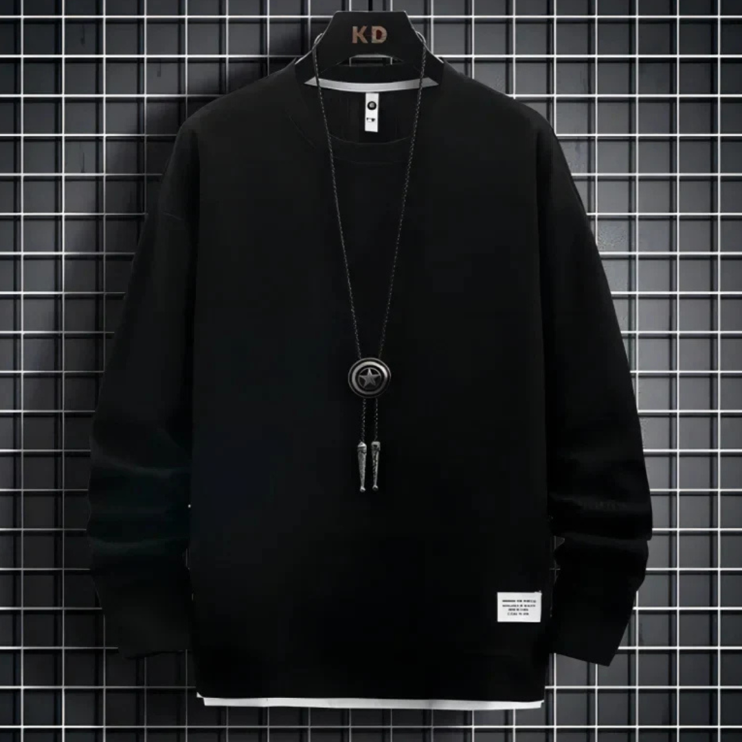 Heren loungewear set bestaande uit sweater en joggingbroek. Sweater kenmerkt ronde hals, lange mouwen en label aan voorzijde. Joggingbroek kenmerkt elastische tailleband met trekkoorden en geribbelde manchetten aan enkels. Beide stukken bevatten geweven textuur.
