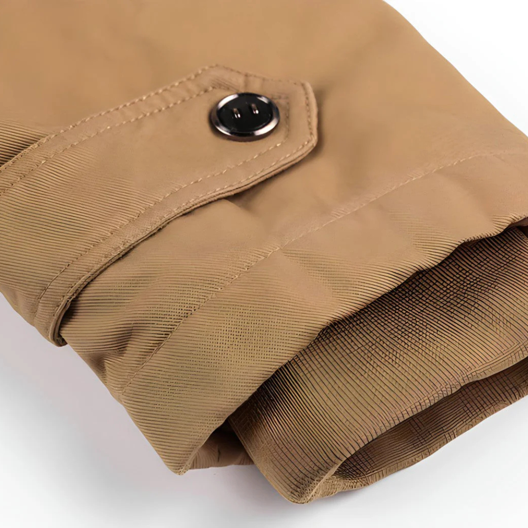 Heren militaire jas met meerdere zakken met klepsluitingen en capuchon. Kenmerkt dubbele ritssluiting aan voorzijde en verstelbare trekkoorden aan taille. Bevat schouder epauletten, lange mouwen met manchetten en fleece voering aan binnenkant.