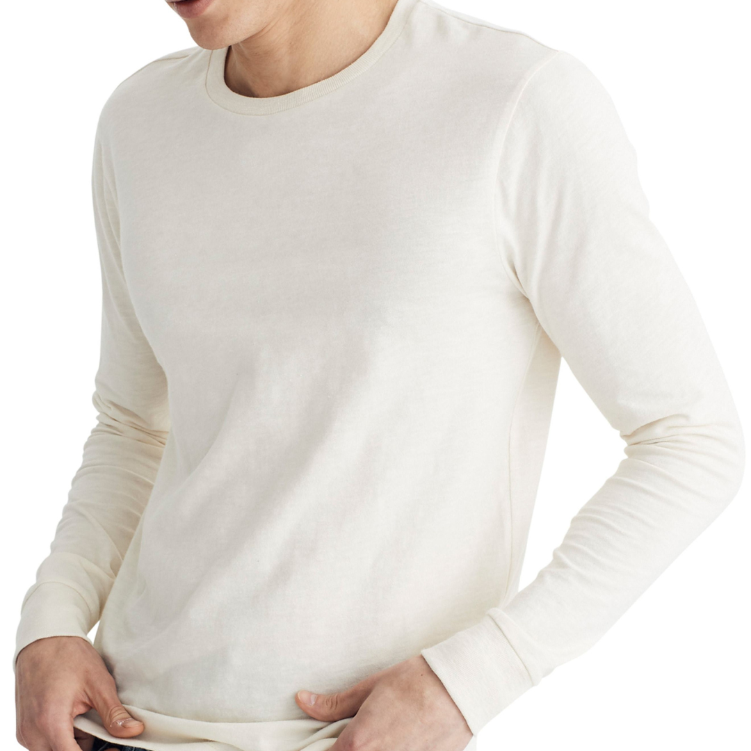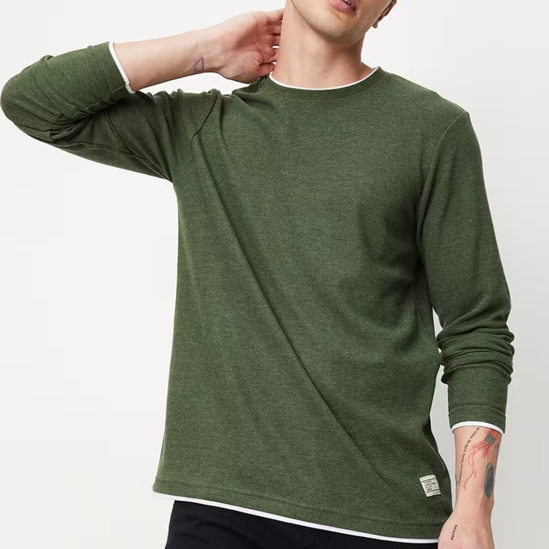 Heren overhemd met lange mouwen en ronde halslijn. Kenmerkt geribbelde manchetten aan de mouweinden en geribbelde boordband aan de onderzijde. Bevat klein geweven labeldetail aan de voorzijde onderaan.